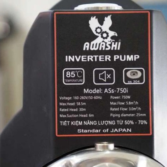 Nhờ công nghệ Inverter, máy bơm Awashi ASs-750i tiêu thụ ít điện hơn so với các dòng bơm truyền thống.
