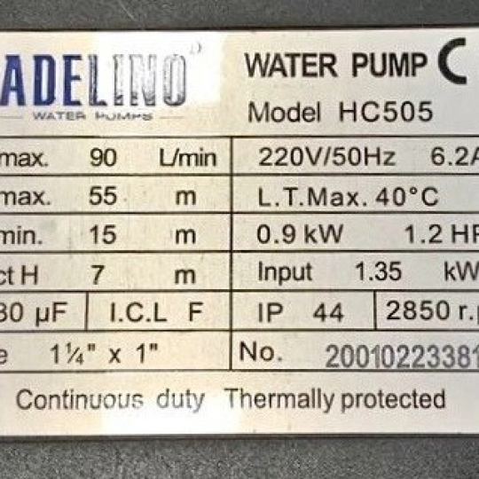 Q. max.    90    L/min 220V/50Hz    6.2A