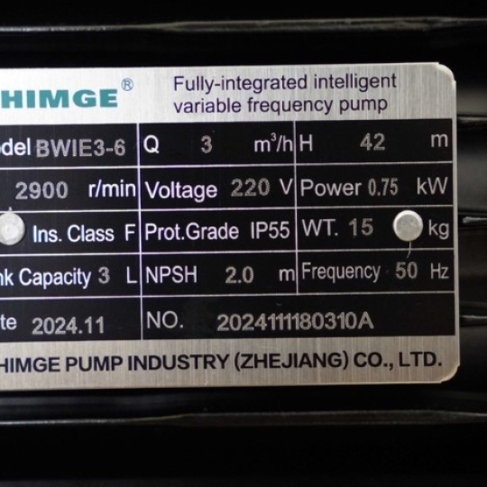 | Model: BWIE3-6 | Công suất: 0.75 kW /1HP |