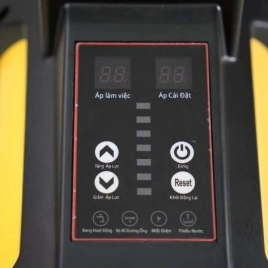 Màn hình hiển thị rõ ràng các thông số như áp lực làm việc, cảnh báo lỗi (thiếu nước, rò rỉ đường ống, mất điện).